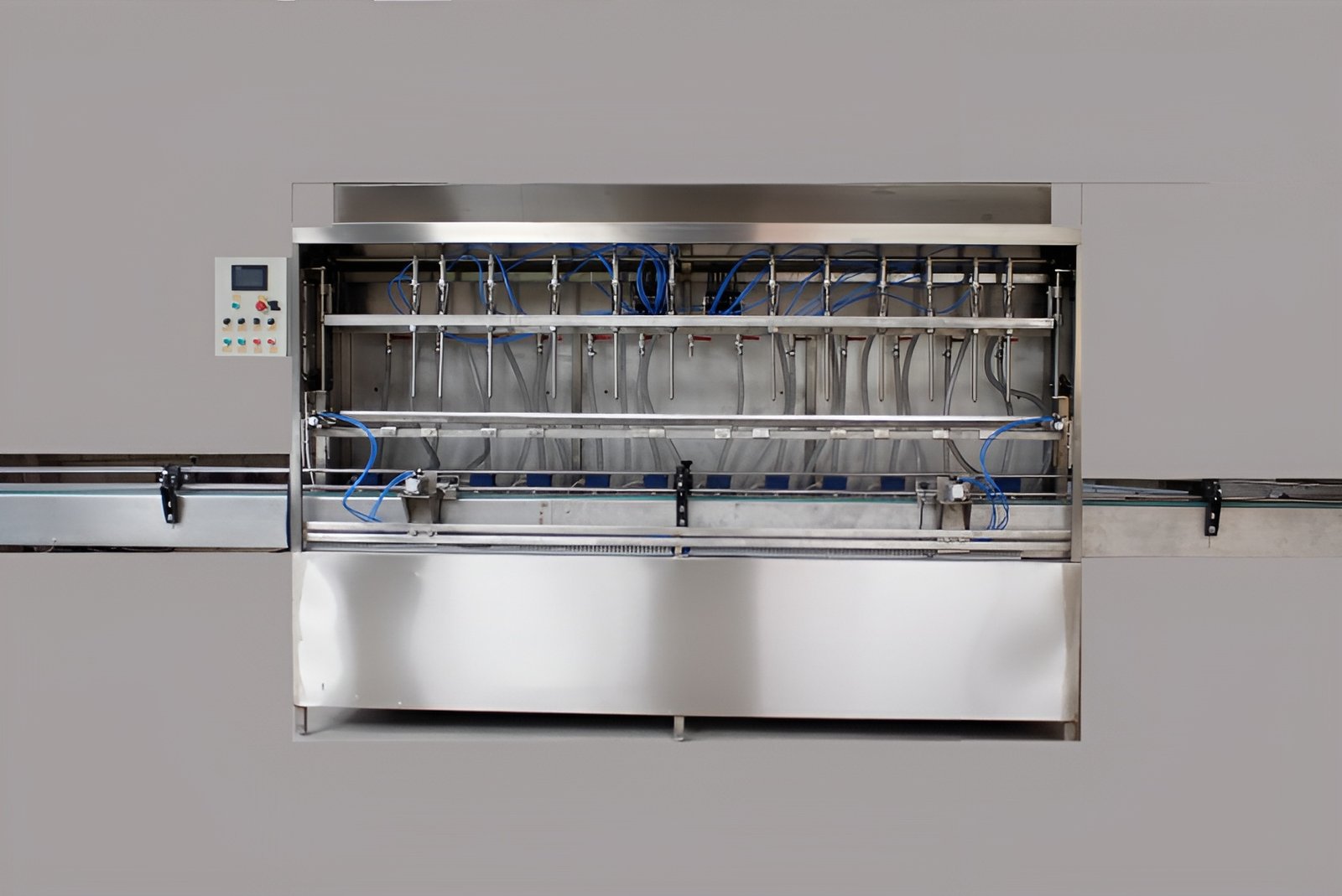 The machine uses PLC program control. It can feed the can 3 gear pomp with load cell. This equipment is always used for high request of measure, lubricating oil, dally chemical, chemical products and high extra value liquid gear pomp filling machine. The machine has high degree of automation, accurate measure. Each filling head has automatic feedback system. The filling volume can be adjusted individually to make sure measures are the same. The whole machine is manufactured according to GWP standard request, all joints use easy joint ways, and the equipment is easy to disassemble and clean. Material parts are all made of 504.
